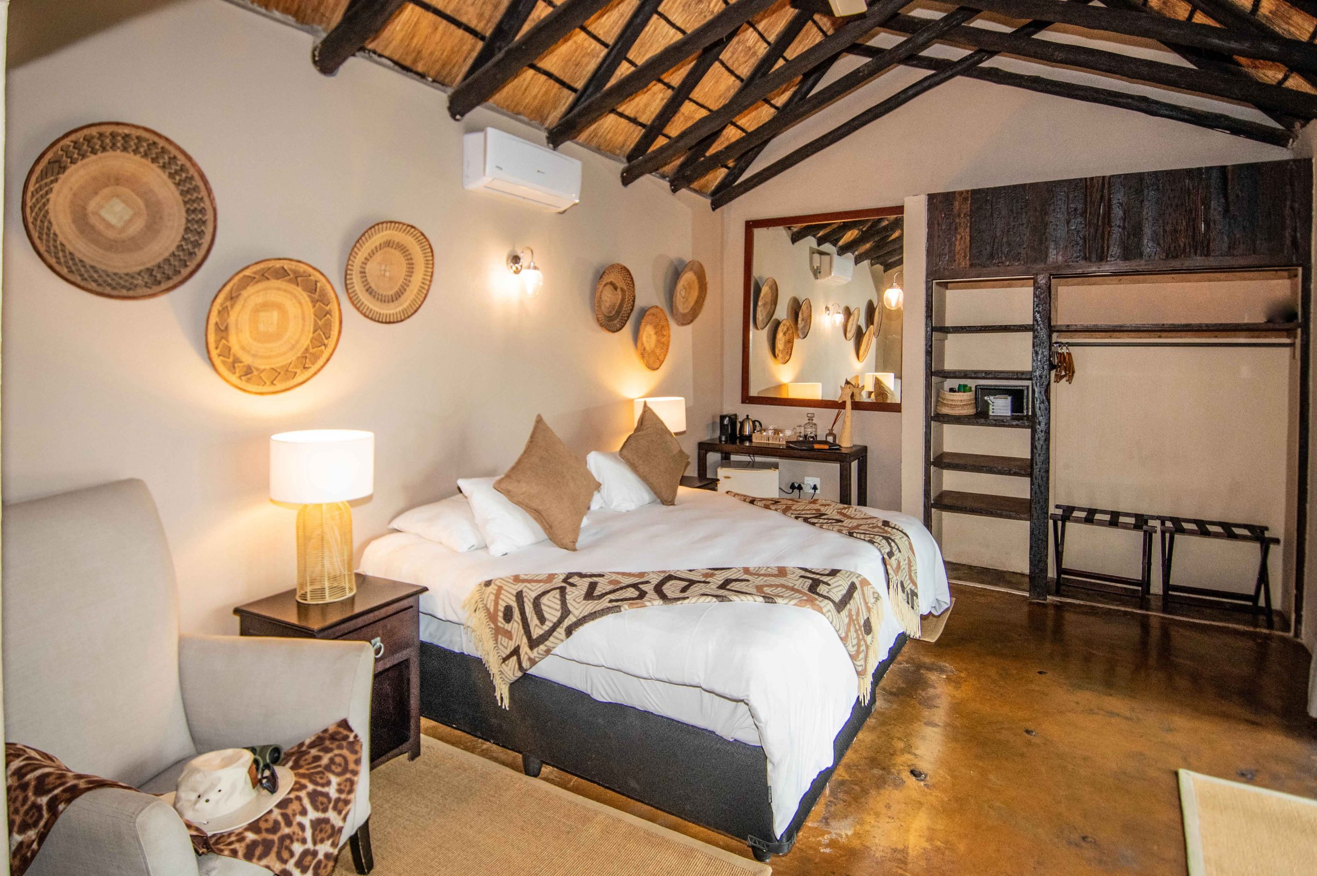 - Eight en-suite thatched chalets with cosy charm
